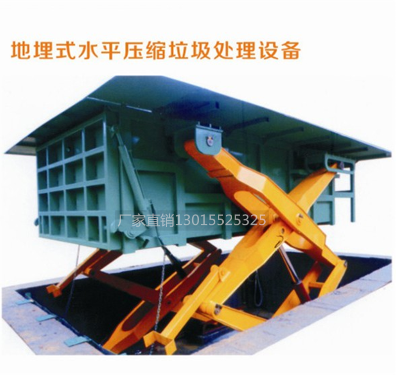 1.主要特點     ◇平穩可靠:兩側舉升,剪叉跨度大,升降平穩,無傾斜;     ◇淺地坑:地坑深度僅為1.55m,保潔及維修極為方便;     ◇高效率:壓實每噸垃圾時間≤10min;     ◇全封閉水平壓縮:采用水平壓縮方式,垃圾壓縮密度≥0.86t/m3,垃圾壓縮后體積大大減小,從而大幅度提高轉運車輛裝載量和轉運效率,降低垃圾處理、轉運等費用;     ◇動作少,故障率低,整套設備的垃圾壓縮、裝車由三個動作完成,簡單實用,各動作之間安全互鎖,防止操作人員誤操作造成安全事故,安全可靠;     ◇垃圾儲存、壓縮及寄存全部在地面以下,地面上沒有垃圾散落,對環境影響較小,環保性好;垃圾壓縮后密度高,水份少,可避免汽車運輸中的垃圾散落、污水滴漏現象,避免二次污染;     ◇土建費用低,占地面積小,可以不蓋大型工作間,既節約了投資,也縮短了工期;     ◇留有專門的維修窗口,維修保養方便;     ◇設有固定式操作和遙控器兩種操作模式,方便實用;     ◇自動化程度高,可大幅提高工作效率,降低勞動強度。