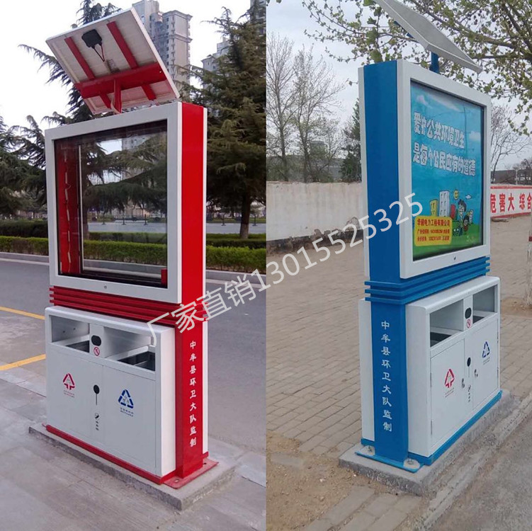 太陽能式廣告垃圾箱目前是市場上銷量最大的、廣告效益是最好的、畫面尺寸最大的一款廣告傳媒垃圾箱。
